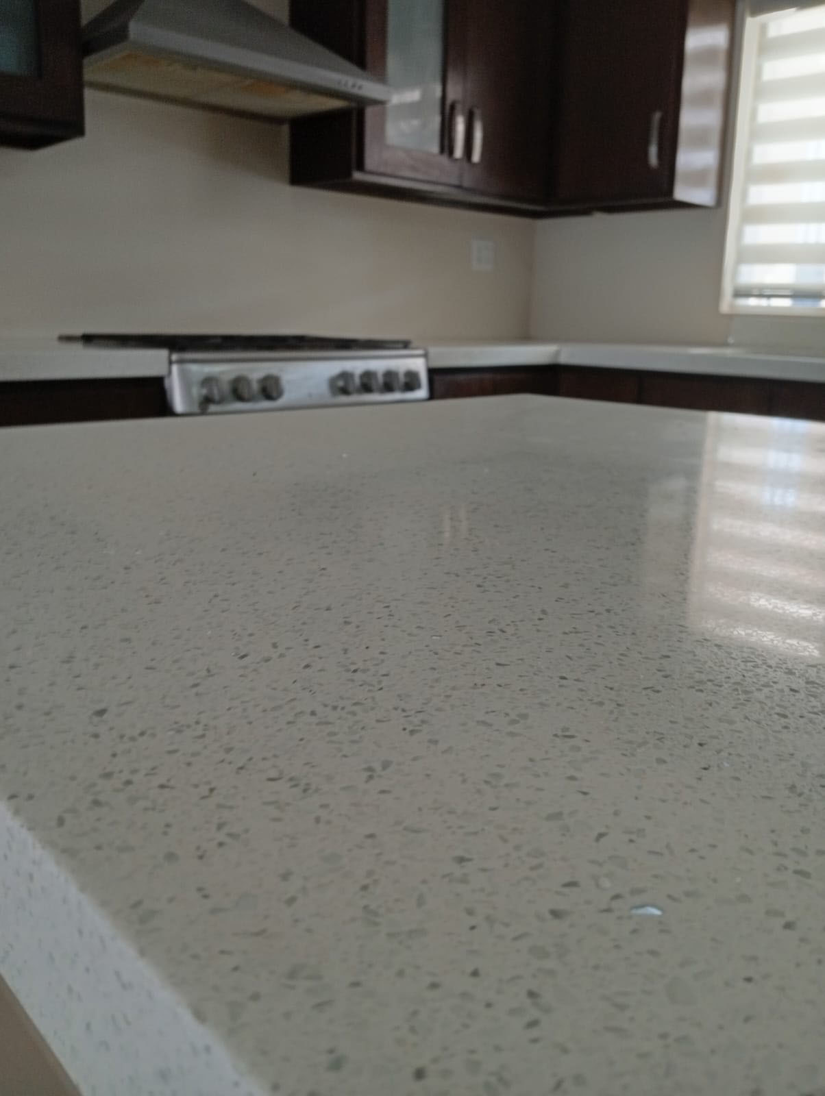 Gabinetes de madera con una elegante y duradera cubierta de cuarzo.
